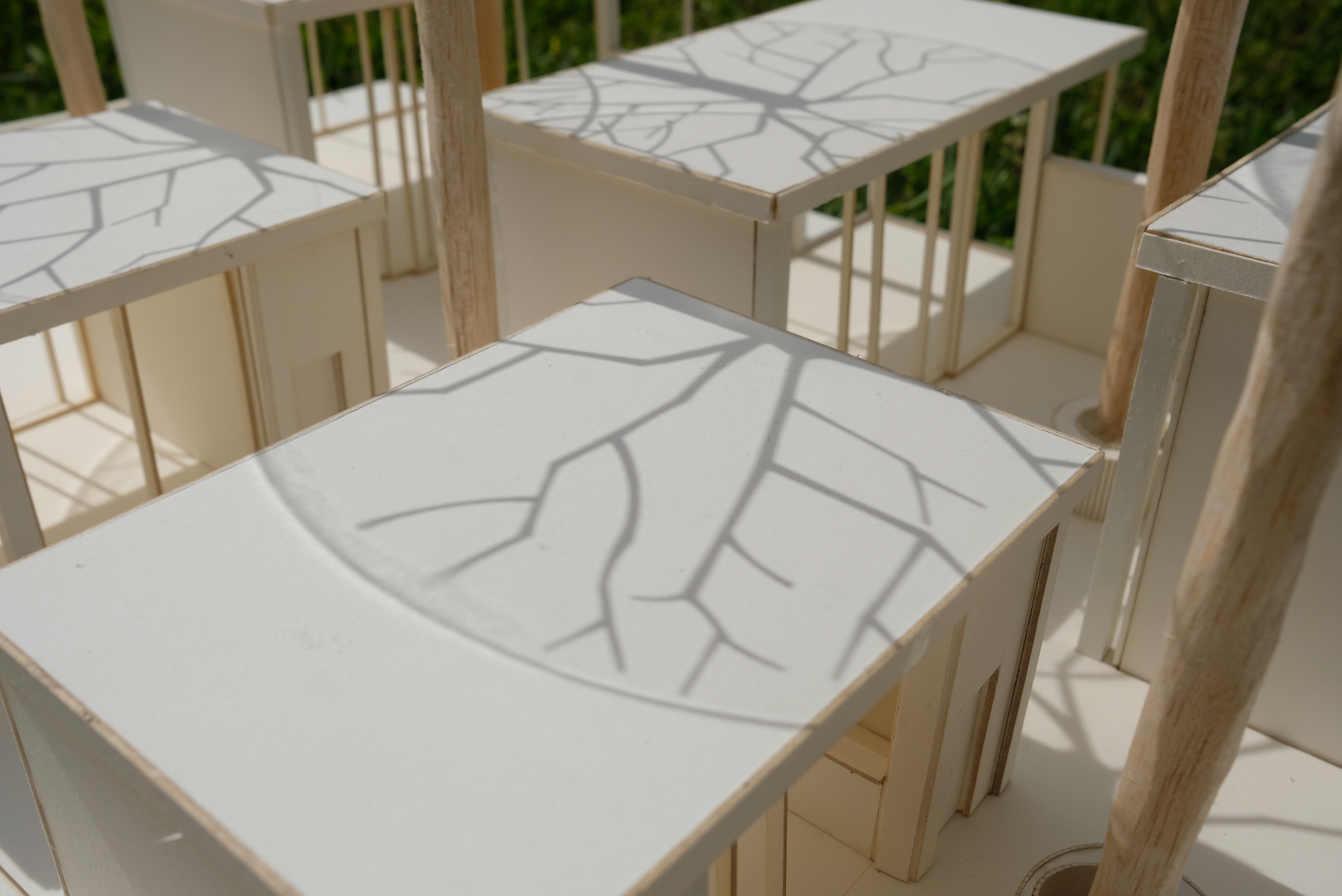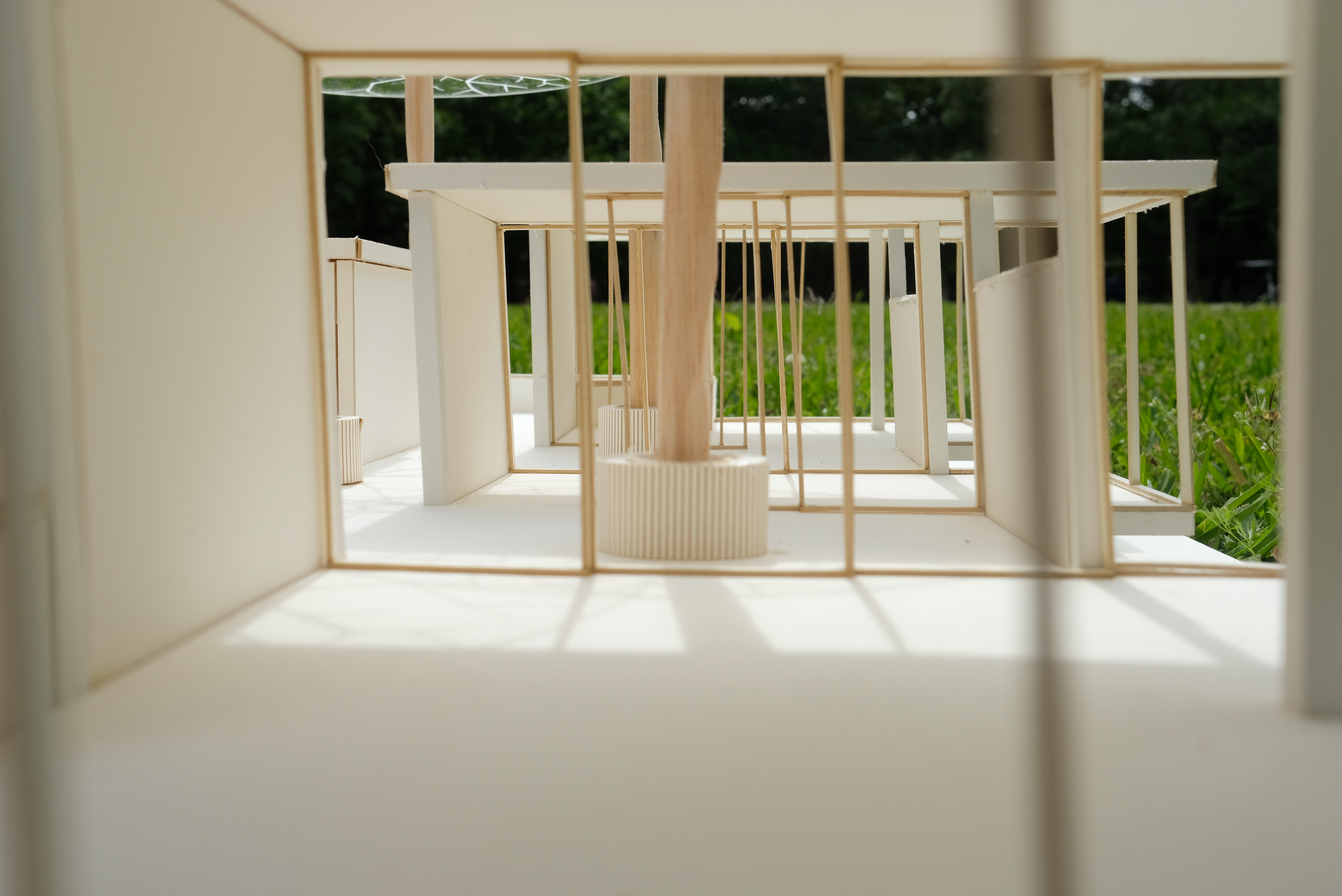 This project strives to produce a design that emulates the binary created by the site being in a tree-populated flood plain: wet ground and dry ground, differentiated by the location of trees and the modulation of the ground level by the adaptation of the trees to the site. Human occupancy at this site yields a difference between “good: and “bad”: ground that can be walked on or used and ground that can’t, yet the occupancy of trees at this site disregards this binary, and trees carry out all of their cycles in one stationary location.
